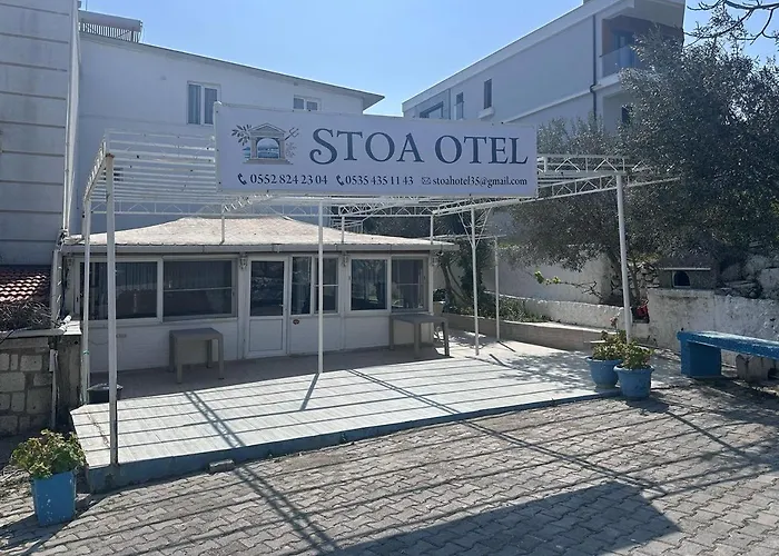 A Seferihisar városi Stoa Otel egyes szobái erkéllyel, síkképernyős TV-vel és klímaberendezéssel felszereltek. A zuhanyzó mellett néhány fürdőszoba vendég piperecikkeket biztosít.